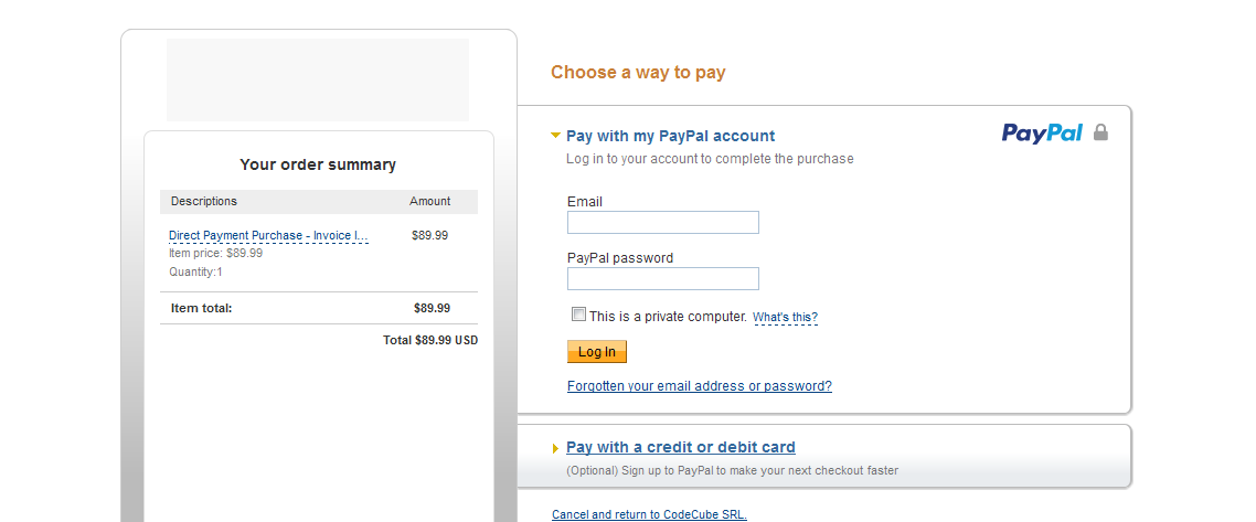 Next, the user will be redirected to the PayPal login page.