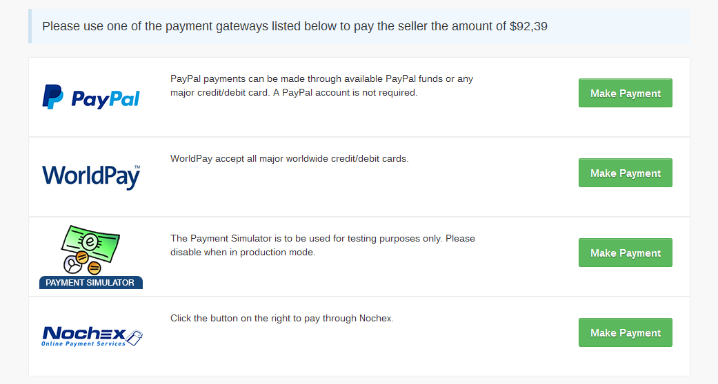 From the Purchase Details menu select the preferred payment gateway (PayPal in the examples below) and click Make Payment: