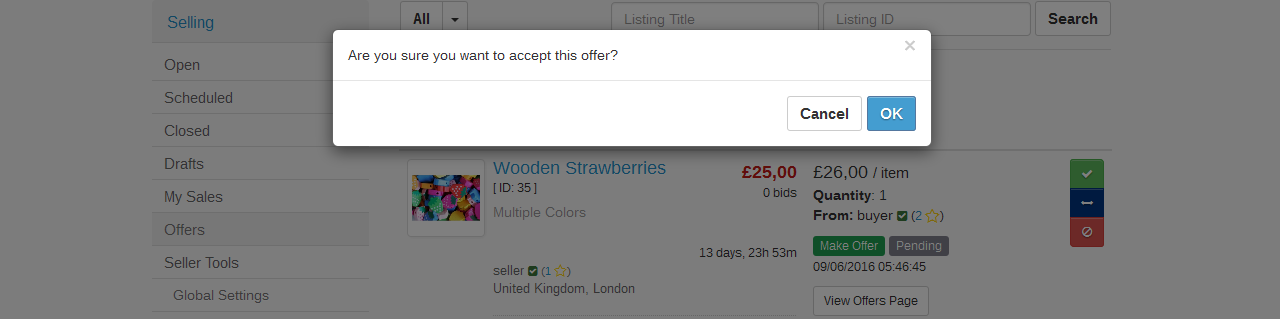 The user (buyer or seller) will have to confirm the cancellation of the offer: