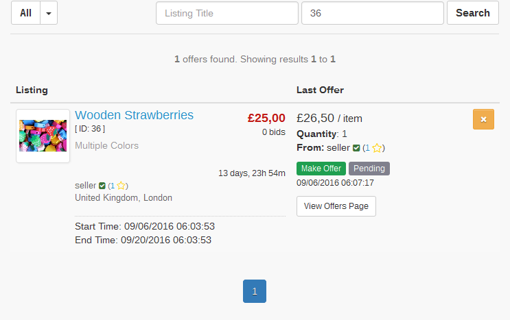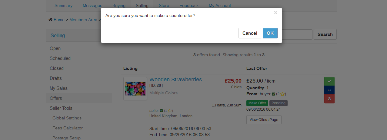 View offers on open auctions from the Offers (Home -> Members Area -> Selling -> Offers ) menu: