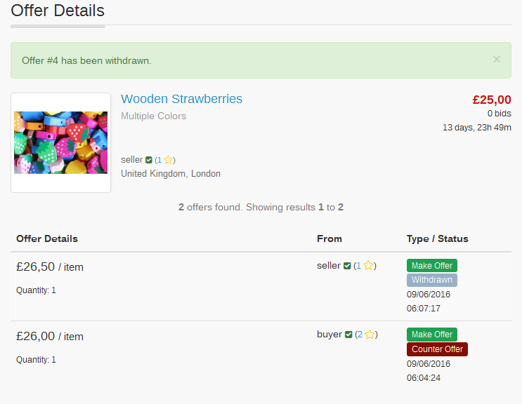 After submitting the offer, the buyer will see a confirmation message: