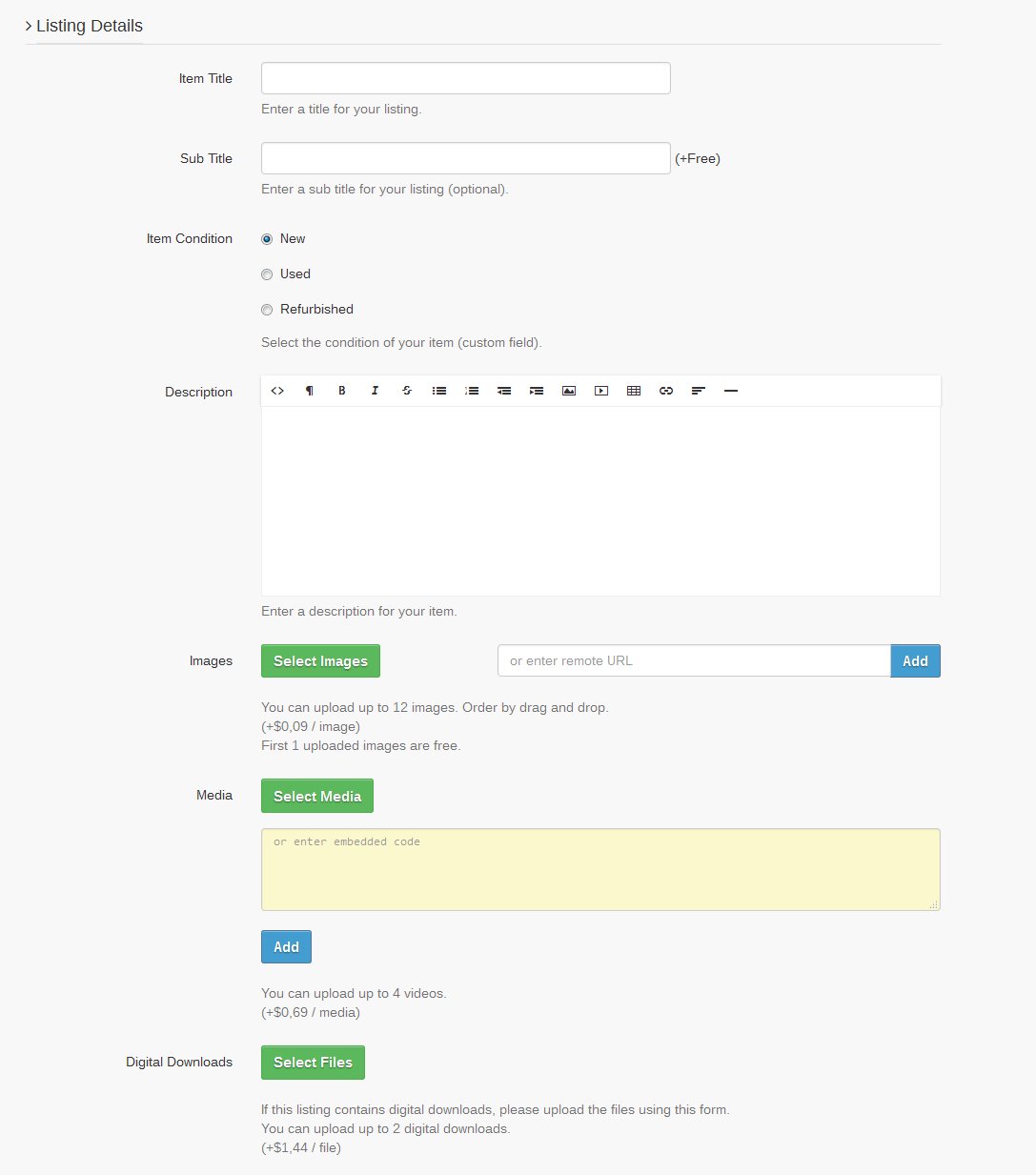 In the Front End, after clicking Sell, the user will be directed to the Create Listing page.