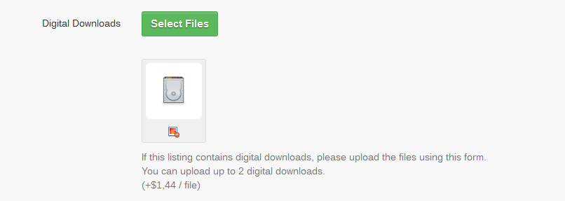 On the Create Listing page in the Listing Details section, click on Select Files to add Digital Downloads.