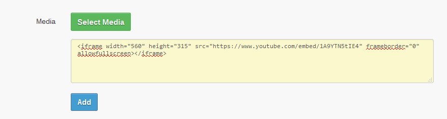 Example: For YouTube use the code provided when accessing "share" -> "embed" on any YouTube video.