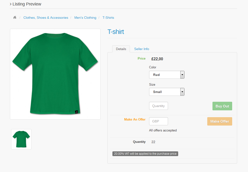 Important: The seller can set a higher price for certain items (see caption above: 1 Red Medium shirt).
