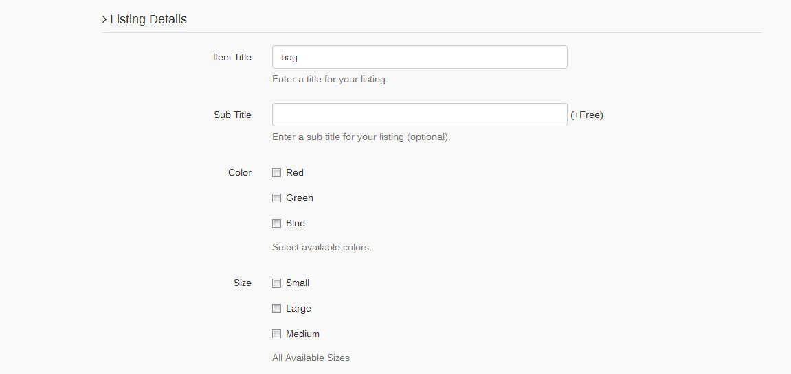 Before listing, review available attributes (colors, sizes), quantity and price for each item: