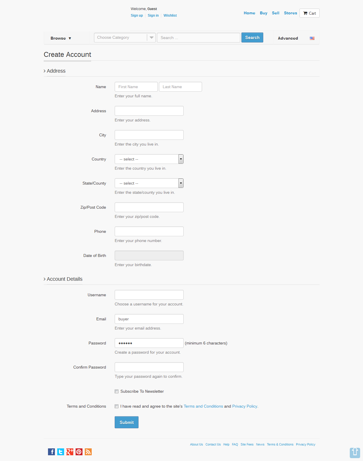 Complete the Create Account fields: